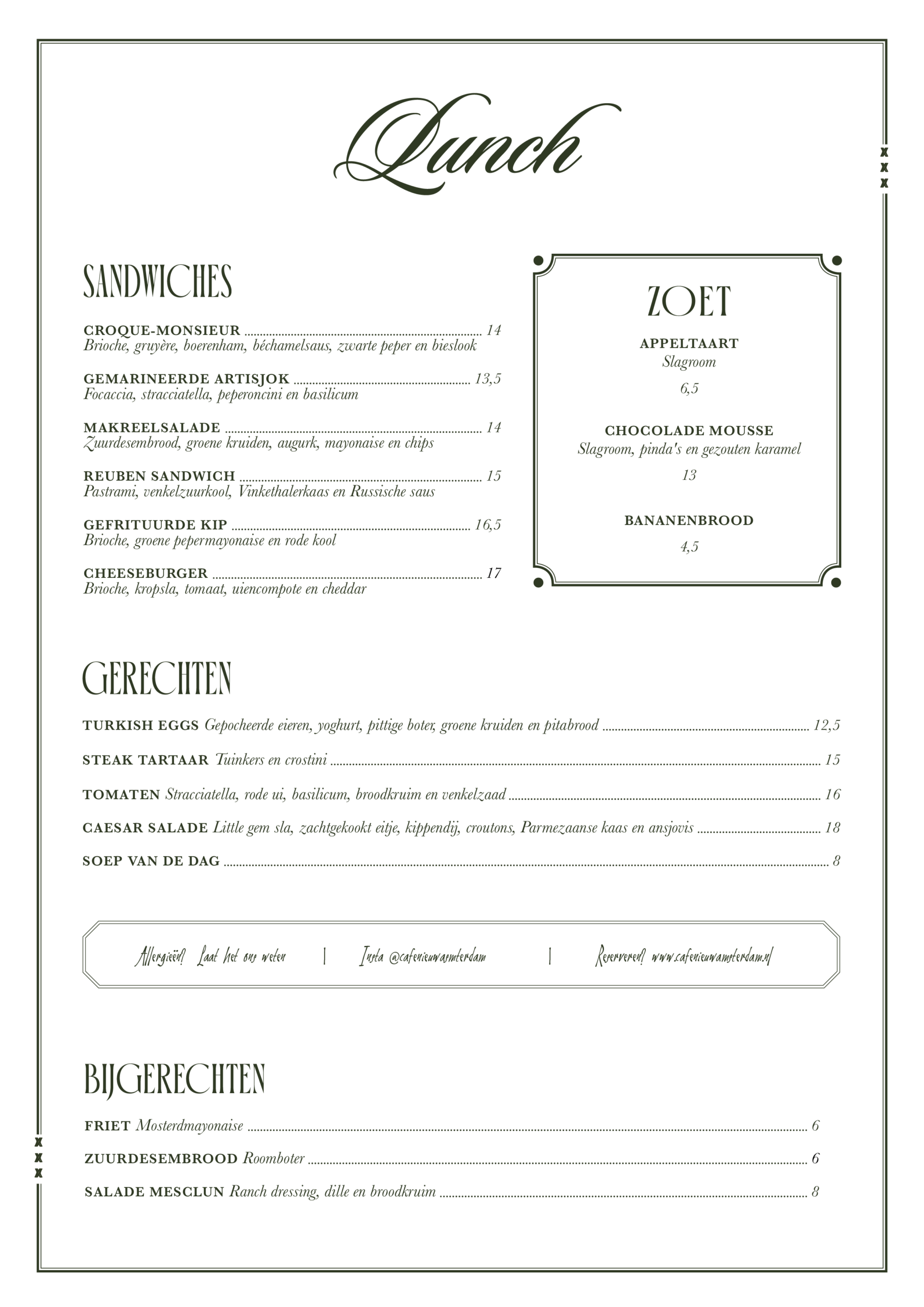 Hier kun je de hele dag terecht voor een brunch, lunch, borrel of een uitgebreid diner.
