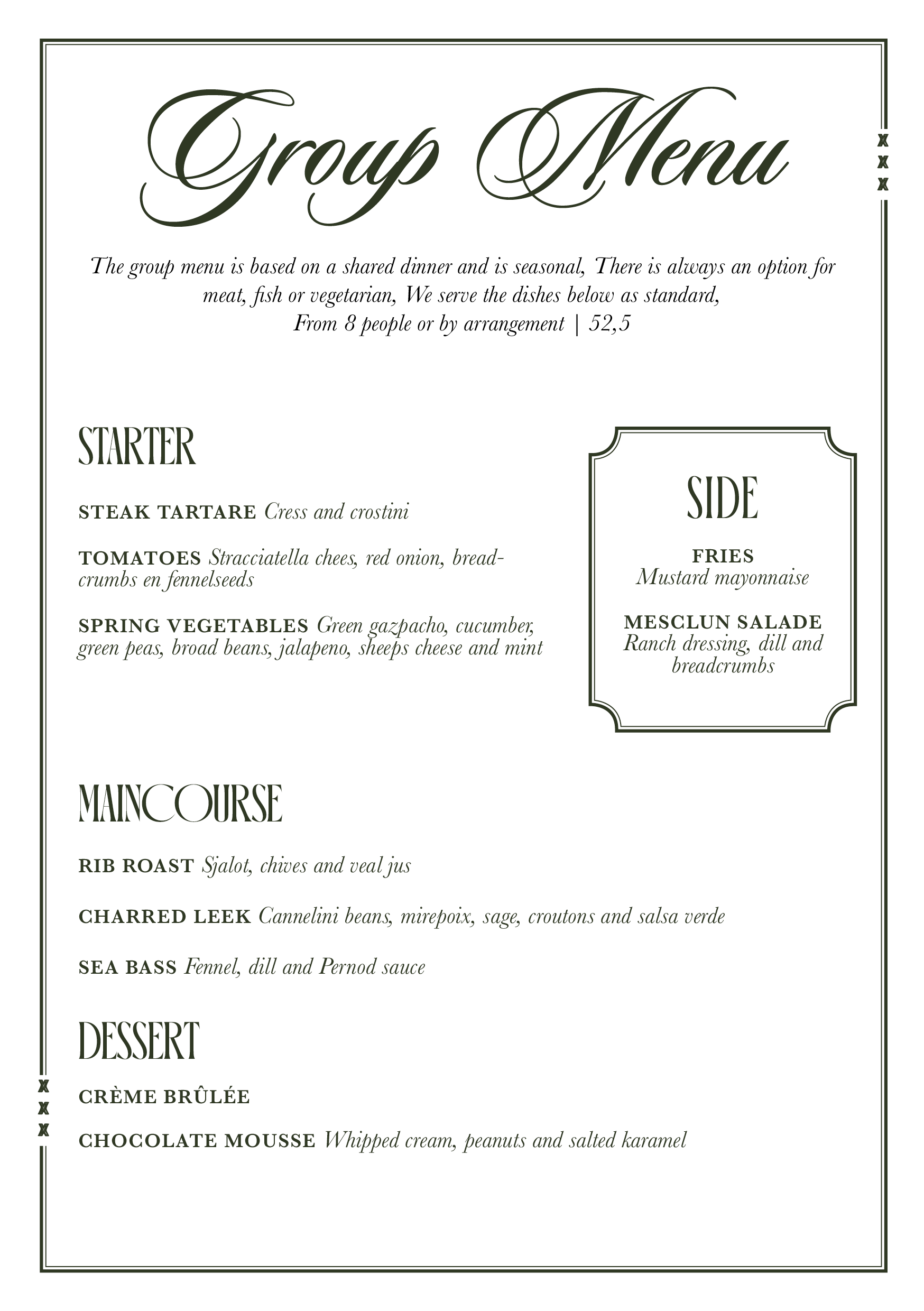 You can visit us all day for brunch, lunch, drinks, or an elaborate dinner.