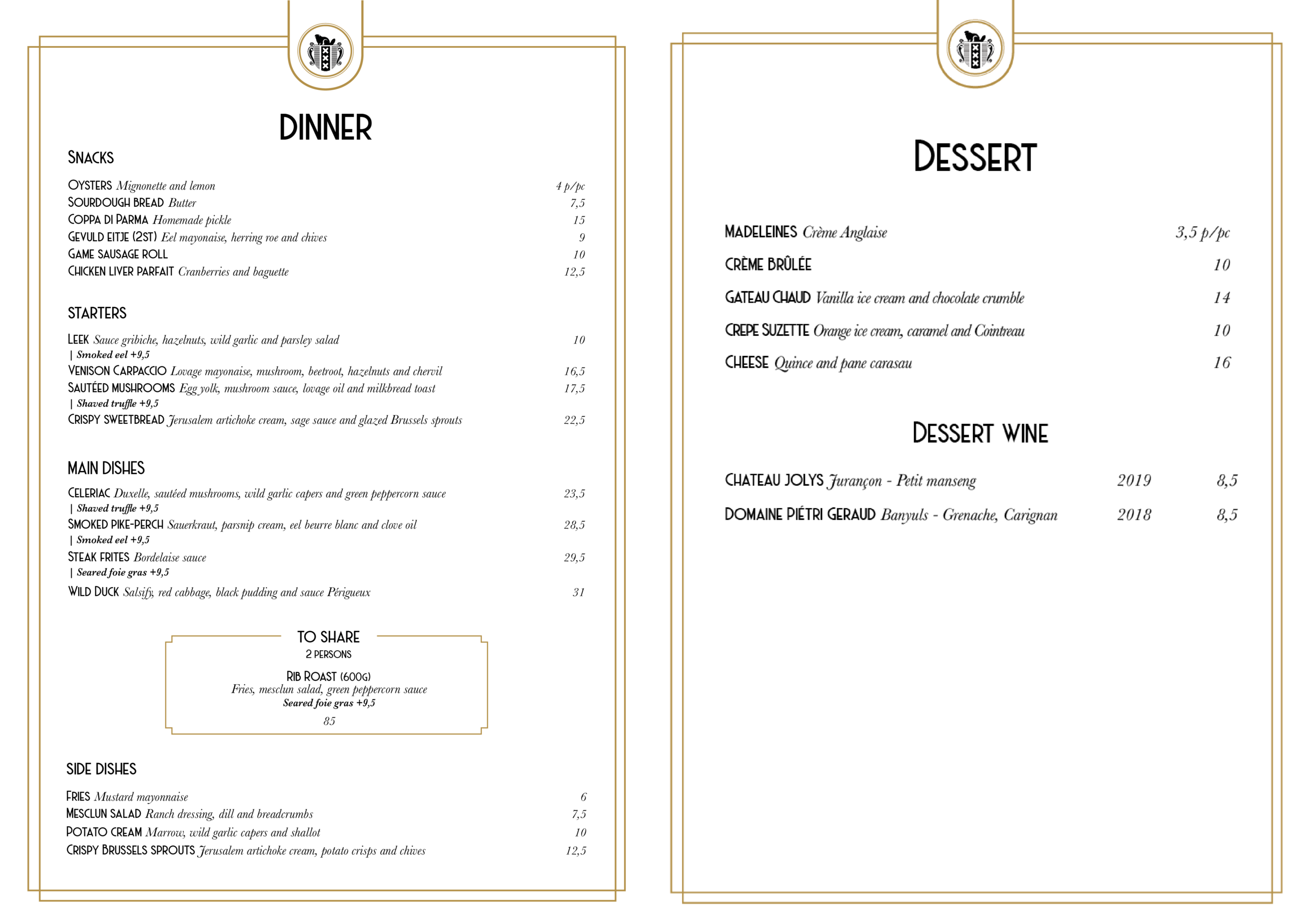 Group Menu Dinner December